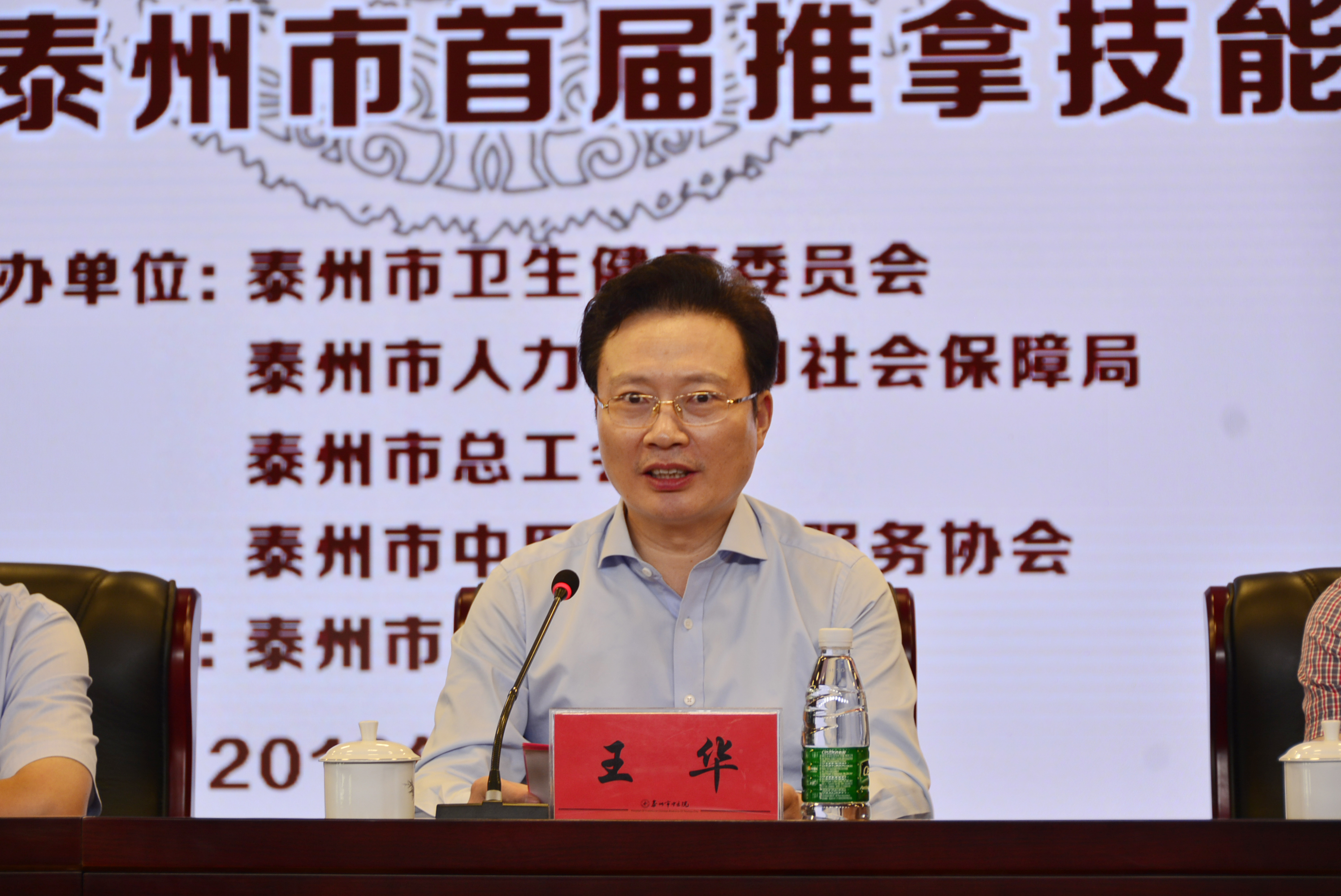 泰州市中醫(yī)院黨委書記、院長王華在致辭中對參加此次比賽的各級領導、專家及參賽選手們表示誠摯的歡迎。他表示此次推拿技能大賽目的在于推廣中醫(yī)推拿、規(guī)范中醫(yī)推拿、宣傳中醫(yī)推拿基本常識,以此來擴大中醫(yī)推拿的影響力、規(guī)范中醫(yī)推拿的技術(shù)、糾正部分群眾對中醫(yī)推拿的錯誤觀念。同時,也借此次機會為各位推拿專家搭建一個溝通互助、交流提高的良好平臺,讓大家在同臺競技中查漏補缺,提高推拿水平。