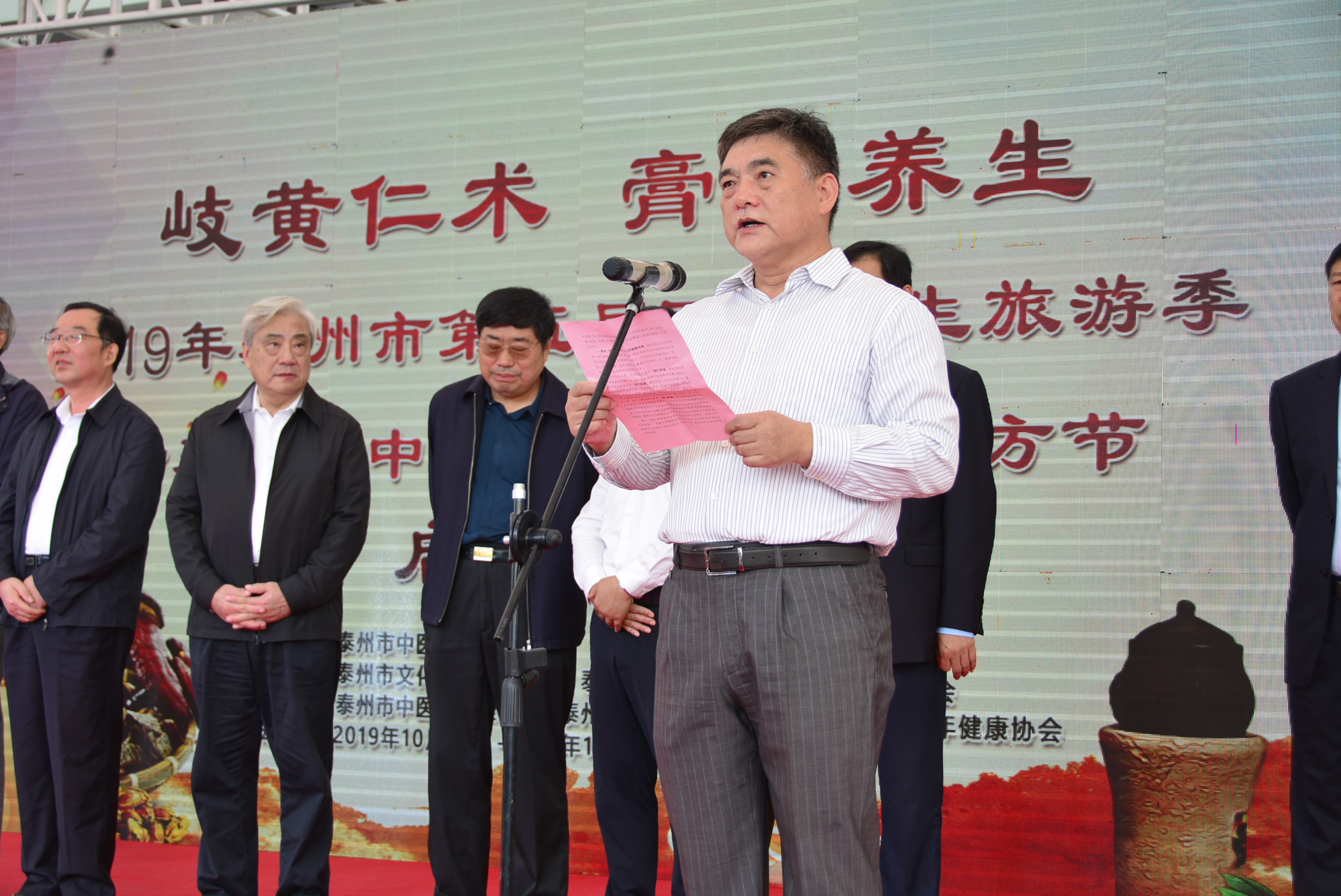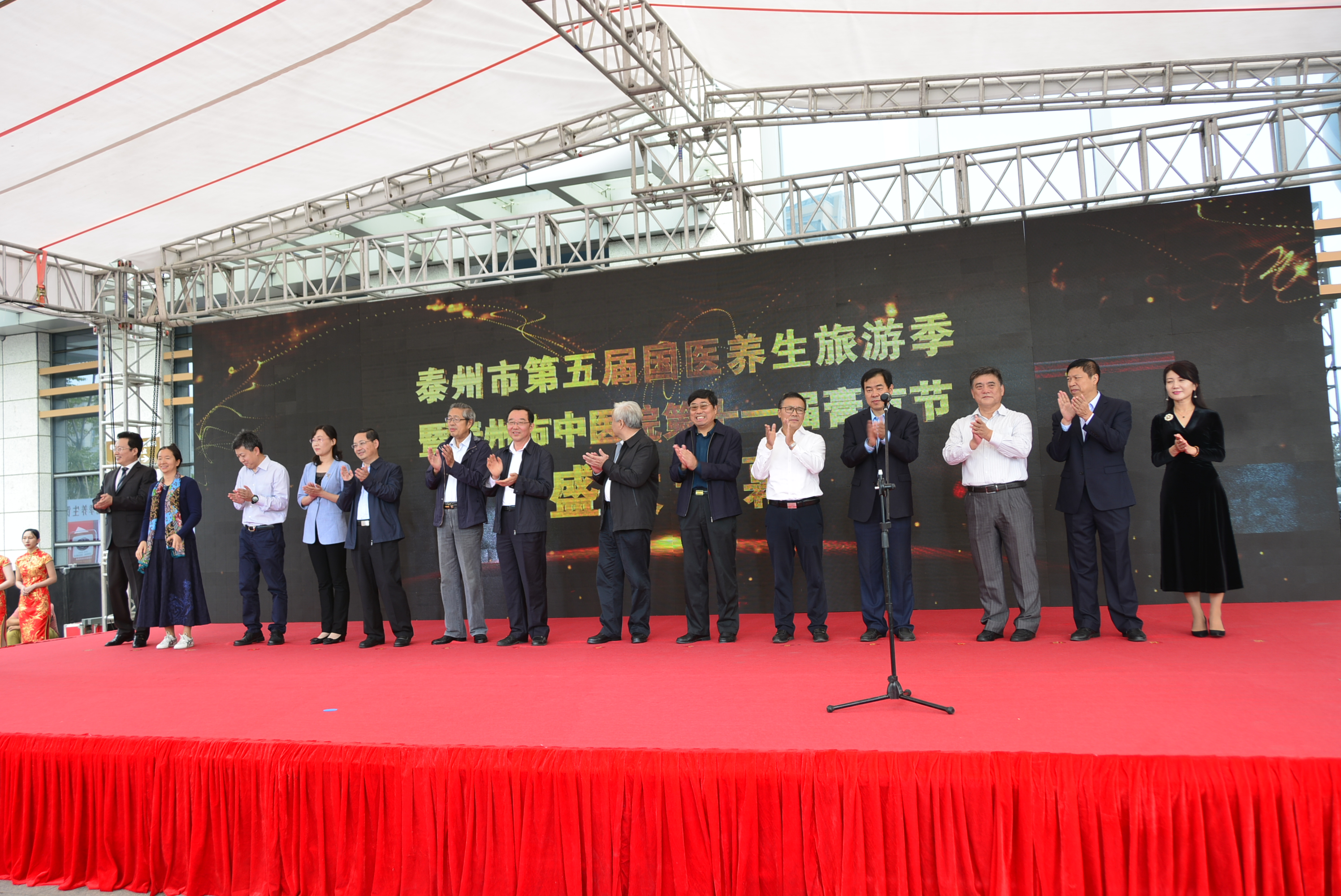 泰州市政協(xié)副主席繆云忠,全國(guó)名老中醫(yī)、同濟(jì)大學(xué)中醫(yī)研究所副所長(zhǎng)顏乾麟,泰州市老年健康協(xié)會(huì)會(huì)長(zhǎng)張正方,泰州市老科技工作者協(xié)會(huì)會(huì)長(zhǎng)戴勝利,泰州市衛(wèi)生健康委員會(huì)主任劉宏鳴,泰州市科學(xué)技術(shù)協(xié)會(huì)主席楊國(guó)華,泰州市總工會(huì)副調(diào)研員楊小敏,泰州市文化廣電和旅游局副局長(zhǎng)王瑾,中國(guó)中醫(yī)科學(xué)院廣安門(mén)醫(yī)院教育處處長(zhǎng)姚魁武,山東省泰安市中醫(yī)醫(yī)院院長(zhǎng)陳濤,中國(guó)中醫(yī)科學(xué)院廣安門(mén)醫(yī)院主任醫(yī)師、國(guó)醫(yī)大師薛伯壽工作站負(fù)責(zé)人薛燕星,泰州市衛(wèi)生健康委員會(huì)副主任翟德祥,泰州市中醫(yī)院院長(zhǎng)王華,泰州市城管局政治部主任黃順宏,江蘇樂(lè)百年健康小鎮(zhèn)總經(jīng)理吳妍,以及泰州市各行業(yè)優(yōu)秀模范代表、先進(jìn)工作者,泰州市中醫(yī)醫(yī)聯(lián)體成員單位代表,泰州市中醫(yī)院領(lǐng)導(dǎo)班子成員、職能處室及醫(yī)務(wù)人員代表,養(yǎng)生旅游專線游客等出席了本次開(kāi)幕式。會(huì)議由泰州市旅游協(xié)會(huì)副會(huì)長(zhǎng)、旅行社協(xié)會(huì)會(huì)長(zhǎng)陳楠主持。