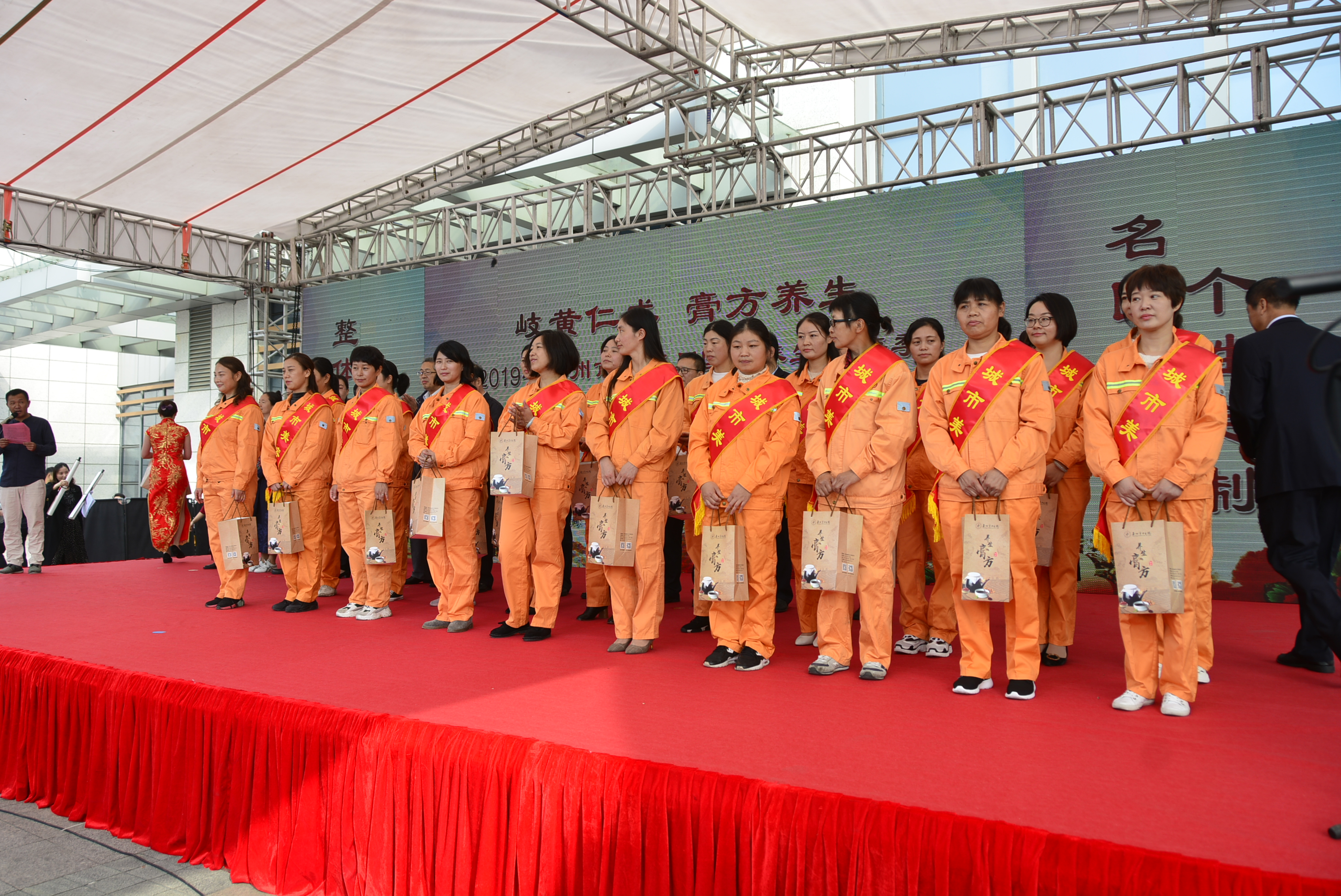 泰州市城管局政治部主任黃順宏為“城市美容師”代表頒發(fā)