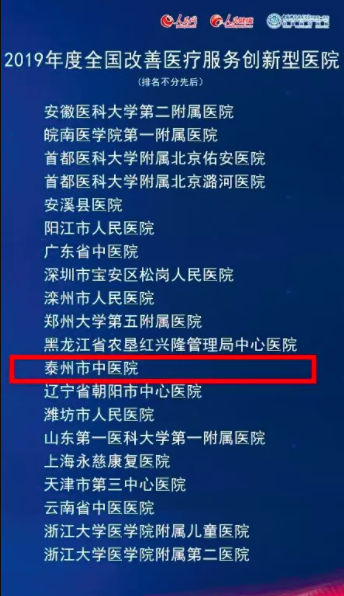 近日,由國家衛(wèi)生健康委醫(yī)政醫(yī)管局、人民網(wǎng)主辦的“2019 中國醫(yī)院院長改善醫(yī)療服務(wù)論壇”在安徽合肥舉行,論壇主題為“改善醫(yī)療服務(wù)——我們在行動、我們共分享”,同期為2019年全國改善醫(yī)療服務(wù)典型舉辦了授牌儀式,泰州市中醫(yī)院從高手如林的評選活動中脫穎而出,上榜本次活動評選的“全國改善醫(yī)療服務(wù)創(chuàng)新型醫(yī)院”名單。據(jù)悉,今年全國僅有20家醫(yī)院入選“2019年度全國改善醫(yī)療服務(wù)創(chuàng)新型醫(yī)院”。