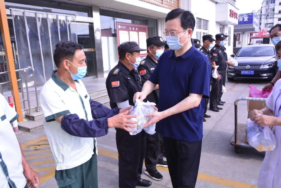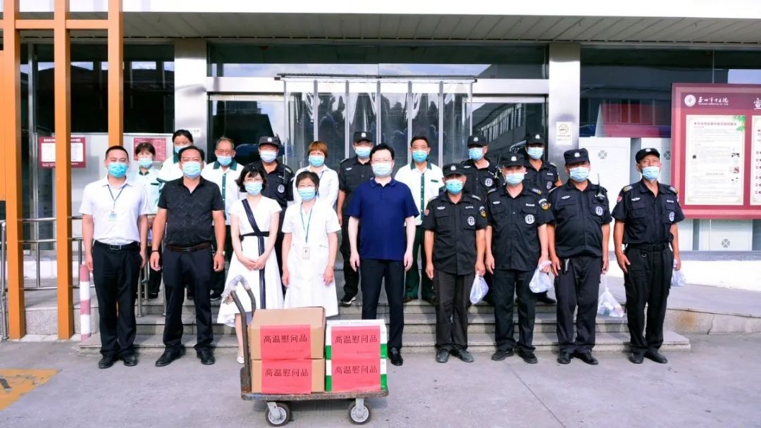8月6日下午,我院黨委書記、院長王華帶領(lǐng)院領(lǐng)導(dǎo)班子成員攜相關(guān)職能科室前往東、西院戶外保安、醫(yī)院二期工程項(xiàng)目施工現(xiàn)場等崗位,對奮戰(zhàn)在高溫一線的人員進(jìn)行慰問,并送上清涼消暑的慰問品。