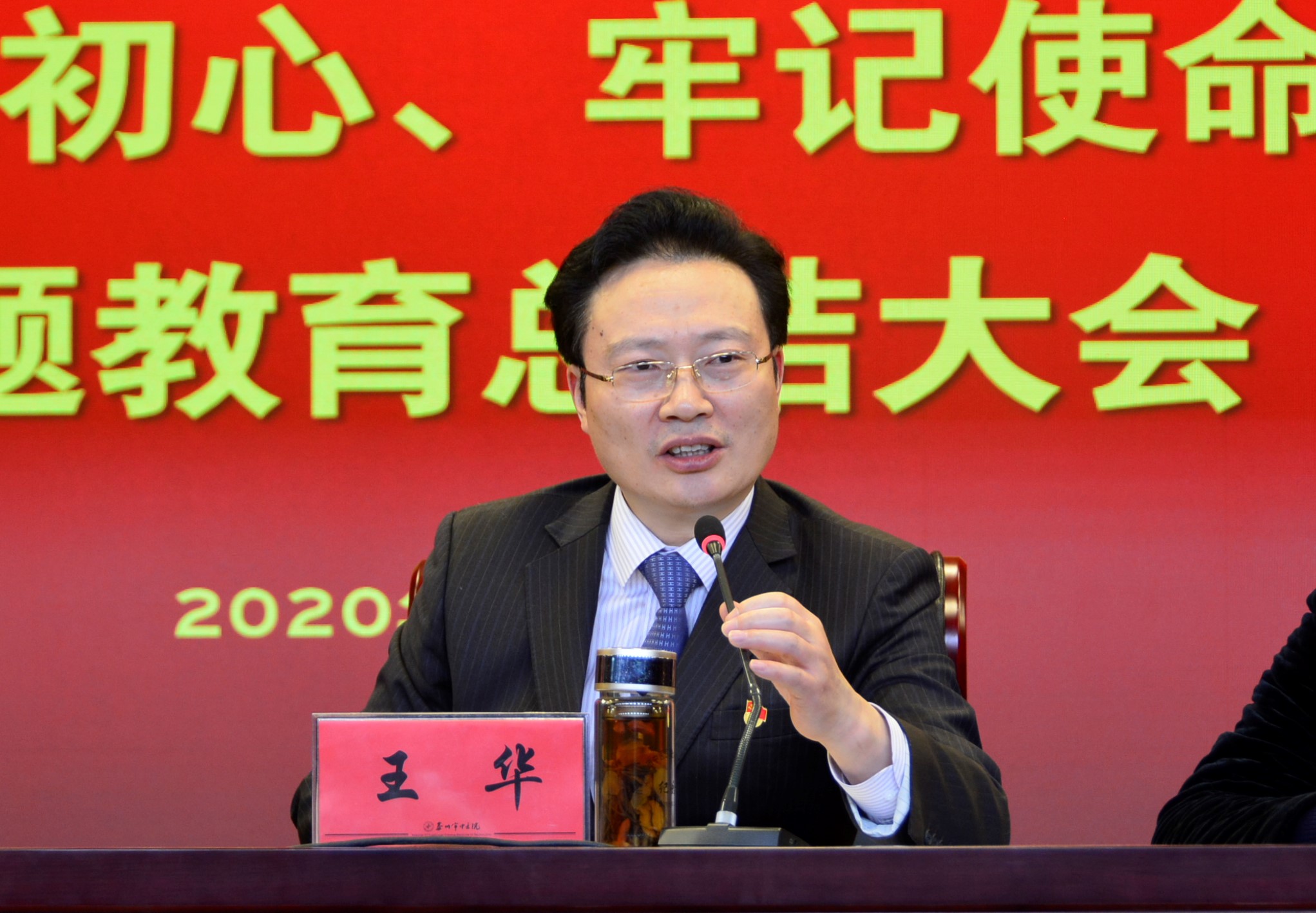 王華指出,習(xí)近平總書記在“不忘初心、牢記使命”主題教育總結(jié)大會(huì)上的重要講話,既是本次主題教育的深刻總結(jié),又是呼應(yīng)、承啟黨的十九屆四中全會(huì)提出“建立不忘初心、牢記使命的制度”的莊嚴(yán)昭告,更是有力宣示中國共產(chǎn)黨人“不忘初心、牢記使命”的戰(zhàn)略動(dòng)員和部署。全院上下要認(rèn)真學(xué)習(xí)貫徹習(xí)近平總書記重要講話精神,堅(jiān)定不移把“不忘初心、牢記使命”作為永恒課題、終身課題。