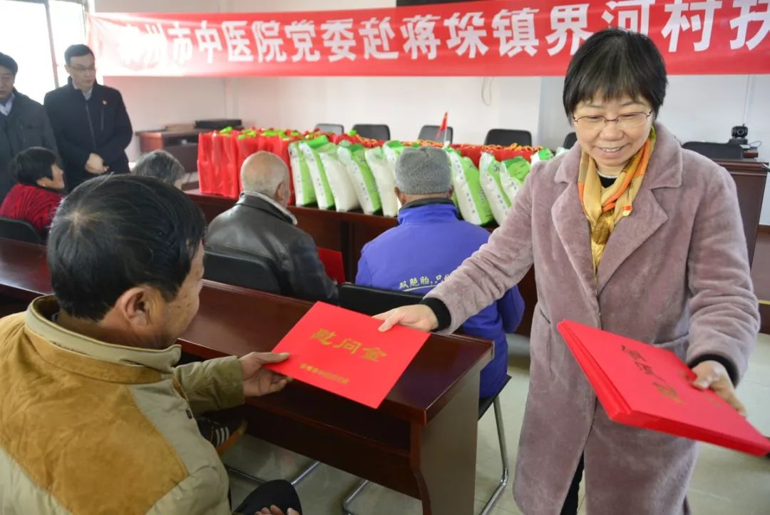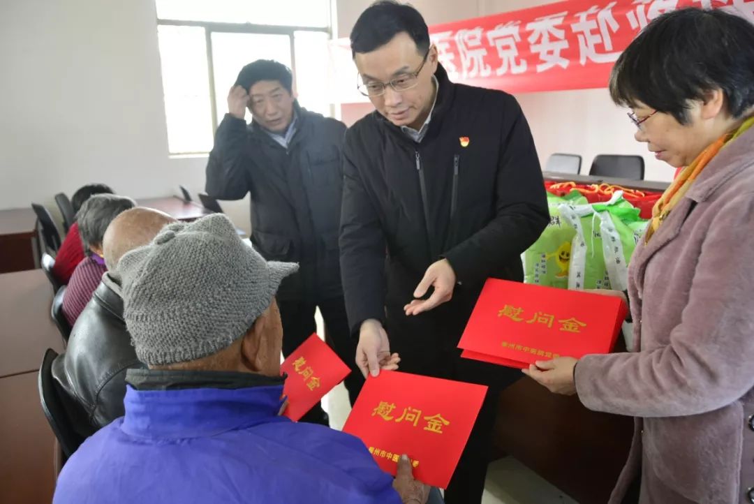 為認(rèn)真貫徹落實黨的十九大和十九屆三中、四中全會精神,鞏固深化“不忘初心、牢記使命”主題教育成果,進一步提升廣大黨員群眾的幸福感和獲得感,確保度過一個歡樂祥和的春節(jié)。1月20日,泰州市中醫(yī)院組織開展大走訪大落實新風(fēng)行動“關(guān)愛服務(wù)月”活動,我院黨員干部職工在黨委書記、院長王華同志的帶領(lǐng)下深入基層,來到蔣垛鎮(zhèn)界河村、雙墩社區(qū)、金東社區(qū),走訪慰問了部分老黨員代表、困難群眾、殘疾人,為他們送去了黨委政府的關(guān)懷和新春的祝福。