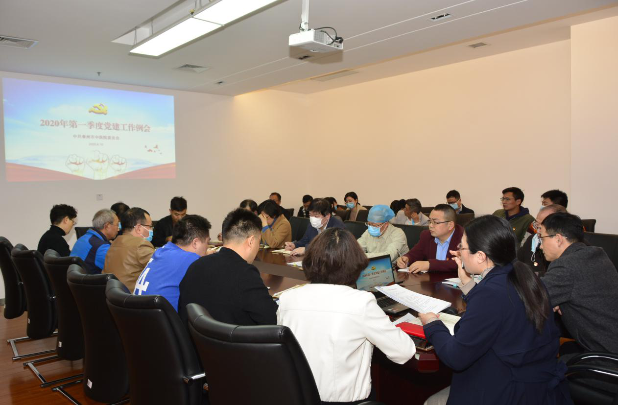 為深入學(xué)習(xí)貫徹習(xí)近平新時(shí)代中國特色社會(huì)主義思想,全面貫徹落實(shí)新時(shí)代黨的建設(shè)總要求,安排部署下一階段的工作任務(wù),4月10日下午,泰州市中醫(yī)院召開了2020年第一季度黨建工作例會(huì)。院黨委副書記孫曉軍、黨委辦公室主任楊雨芹、紀(jì)檢監(jiān)察室主任周暉、各黨支部書記、副書記、支部委員參加會(huì)議。會(huì)議由楊雨芹主任主持。