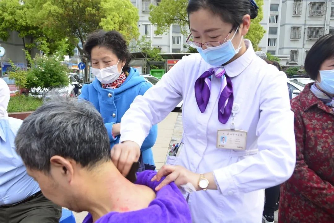 “大爺,您血壓有點高,平時生活上要多注意一點,我給您開點方子調理調理”,“奶奶,最近雨天比較頻繁,您也可以像我一樣用艾灸在膝蓋穴位周圍熏一熏,把寒給驅散了,就沒有那么痛”……活動現場一片忙碌,中醫(yī)護理操作受到“追捧”,而傳統(tǒng)針灸、拔罐、刮痧、撳針、循經拍打等特色中醫(yī)療法更是深受大家喜愛。