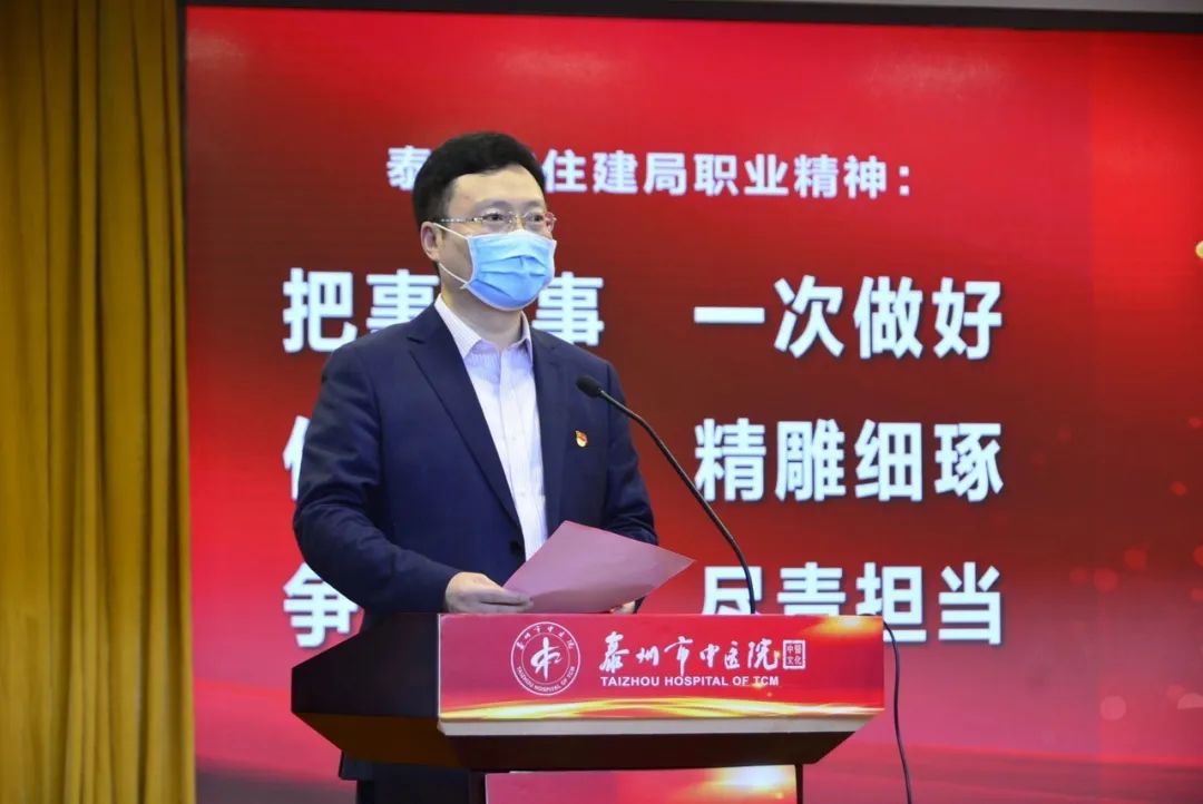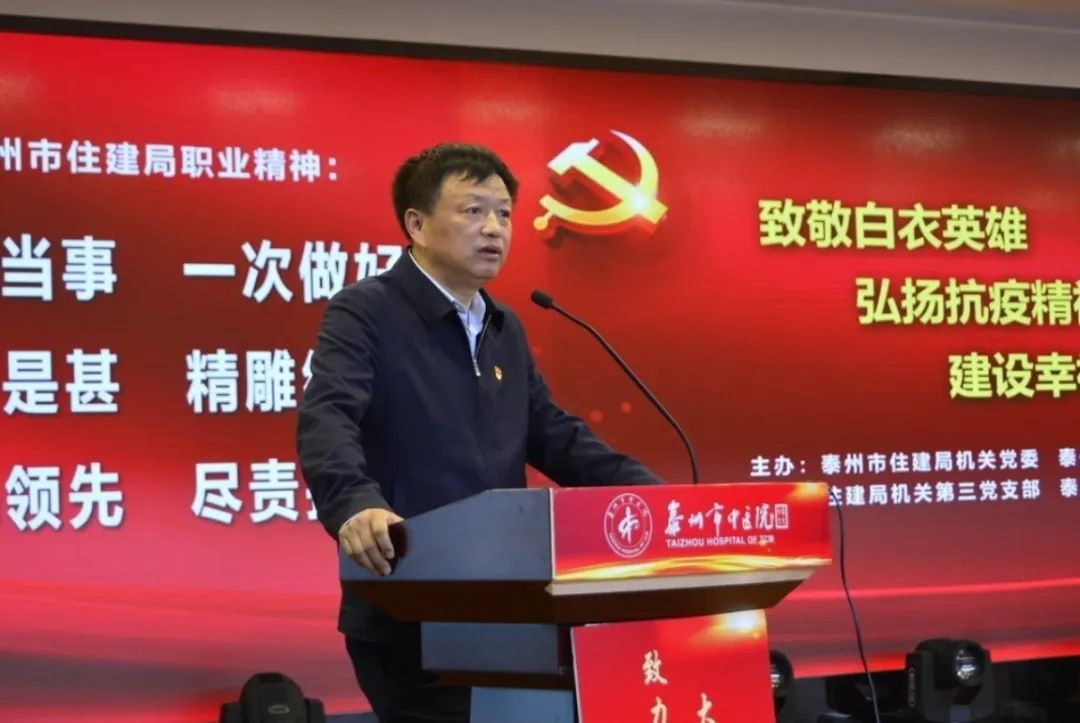 為進(jìn)一步加強(qiáng)規(guī)范化建設(shè),提升支部黨建工作水平,激勵(lì)廣大黨員干部積極履職擔(dān)當(dāng)。4月30日上午,泰州市住建局機(jī)關(guān)黨委聯(lián)合泰州市中醫(yī)院黨委開展“致敬白衣英雄 弘揚(yáng)抗疫精神 建設(shè)幸福城市”主題黨日活動(dòng)。市住建局黨組書記、局長高衛(wèi)東及班子成員;市中醫(yī)院黨委書記、院長王華及班子成員;市住建局和市中醫(yī)院黨員代表參加了此次活動(dòng)。