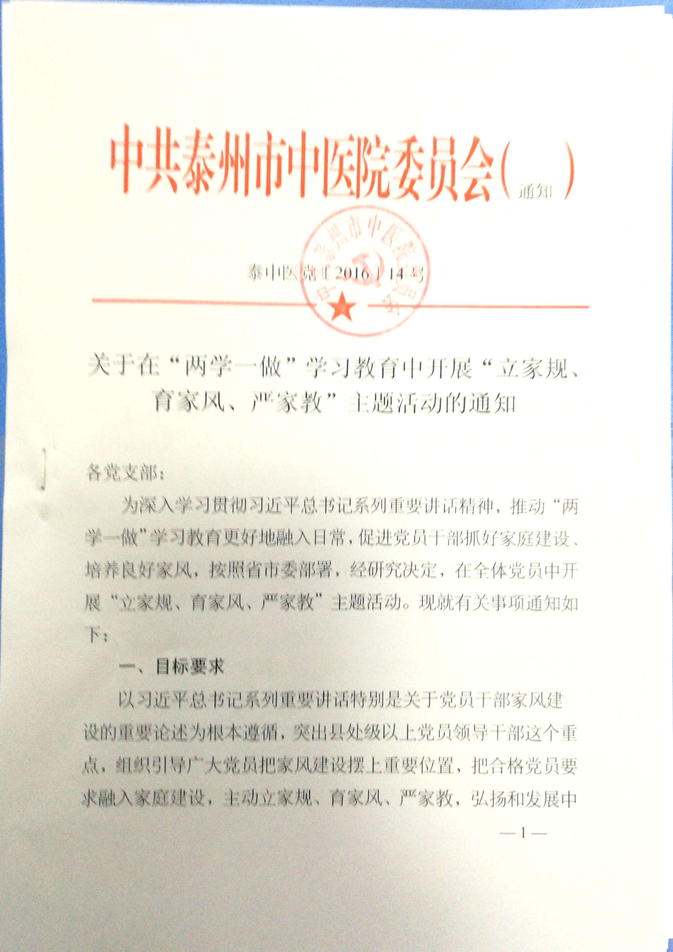關于在“兩學一做學習教育中開展”立家規(guī)、育家風、嚴家教主題活動的通知