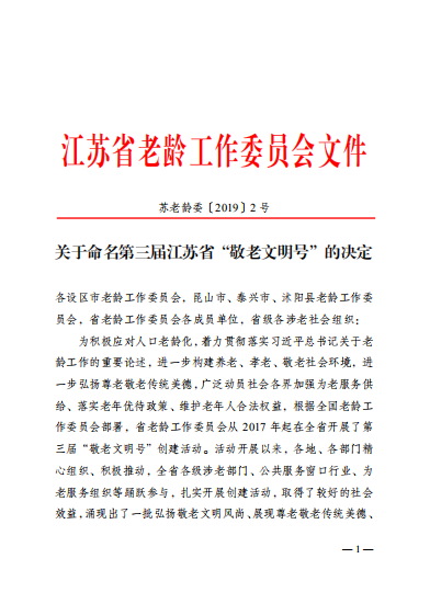 近日,泰州市中醫(yī)院老年病科被江蘇省老齡工作委員會(huì)授予第三屆江蘇省“敬老文明號(hào)”稱號(hào)。