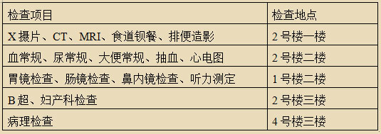 1、門診檢查地點一覽表