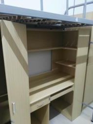 一、床架部分 1、公寓床尺寸:2000*900*2150mm(長*寬*高),床板頂面離地面高度為1800mm。 床架站頭寬度為900mm,高度為2150mm,立柱主管采用40*40*1.5mm方管。兩側(cè)床頭上橫管采用40*40*1.5mm方管三根連接,豎管采用25*25*1.2 mm方管,單床位兩床架之間靠墻一側(cè)距離地面處用一根25mm*25mm*1.2mm方管連接,床架接地處采用ABS工程塑料一次型壓膜成型橡膠防滑腳套。 2、床框外側(cè)采用40mm(寬)*80mm(高)*1.5mm矩形管,床框內(nèi)側(cè)橫管采用30mm(高)*40mm(寬)*1.2mm矩形管共5根,床與橫管焊接后底部保證平齊。 3、護欄采用25*25*1.5 mm方管,護欄豎管與下橫管均采用25*25*1.5mm方管。護欄高度為300mm,下橫管高度100mm。護欄與床框焊接成整體。護欄兩側(cè)與床框連接處,采用一次沖壓而成的鐵板焊接,與床架片采用鏍絲整體連接固定。 4、蚊帳架高度1000mm,立柱采用?19*1.2mm圓管,橫桿采用?16*1.2mm圓管制作。 5、床板材質(zhì)為整條杉木板條,木板寬度≥80mm,厚度不小于18mm,鋪板間的縫隙≤10mm,鋪板橫檔5根,規(guī)格為40mm*50mm,鋪板鋼釘須有防拔處理。床板正反四面拋光,床承受動、靜載荷500KG,木材吸水率控制檢測標準準確性≤15%,床板含水率、蟲眼和節(jié)疤數(shù)不超過國家家具用材標準。 二、柜體部分 1、衣柜W800*D600*H1750,全部采用18mm實木多層雙飾面板(應符合E1環(huán)保等級)制作,對開門設計,內(nèi)含圓管不銹鋼掛衣桿一根,L型隔板。柜門裝掛鎖扣,可掛明鎖。安裝鋁合金把手。 2、電腦桌面為25mm厚,前端為鴨嘴邊后成型,其余環(huán)保清漆涂飾,基材采用25mm實木多層雙飾面板(應符合E1環(huán)保等級)制作。桌下小柜全部采用18mm實木多層雙飾面板(應符合E1環(huán)保等級)制作,抽屜裝掛鎖扣,可掛明鎖。抽屜面板及小柜門板安裝鋁合金把手。 3、書架全部采用18mm實木多層雙飾面板(應符合E1環(huán)保等級)制作,端口四周均采用半圓邊,環(huán)保清漆涂飾。 4、所有柜門、書架、臺面、顏色一致。 5、柜下均采用25*25*1.2方管焊接成的整體的鋼架支撐,高度為100mm,均配有ABS工程塑料一次型壓膜成型橡膠防滑腳套。 6、五金件:鉸鏈、三節(jié)滑軌均采用DTC牌,掛鎖件為304#不銹鋼材質(zhì)。 7、家具圖樣僅供參考。 |