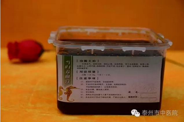 當歸養(yǎng)血膏是泰州市中醫(yī)院特色成膏,功能主治:補氣養(yǎng)血、滋陰潤燥、調經(jīng)止痛、祛斑養(yǎng)顏;用于血虛萎黃,眩暈心悸,肌萎無力,心煩不眠,肺燥咳嗽,月經(jīng)不調,經(jīng)血量少/量多,經(jīng)期延長,黃褐斑,皮膚瘙癢等。