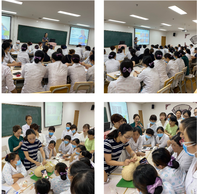 在講解完相關(guān)知識后,參會人員分成4組進行現(xiàn)場練習(xí),老師進行現(xiàn)場指導(dǎo)。大家在認真練習(xí)的同時,結(jié)合臨床經(jīng)驗提出了工作中常見的困惑,并相互交流,相互促進,更激發(fā)了大家的學(xué)習(xí)熱情,現(xiàn)場氣氛輕松活躍,學(xué)習(xí)氛圍濃厚,提升了團隊協(xié)作能力。