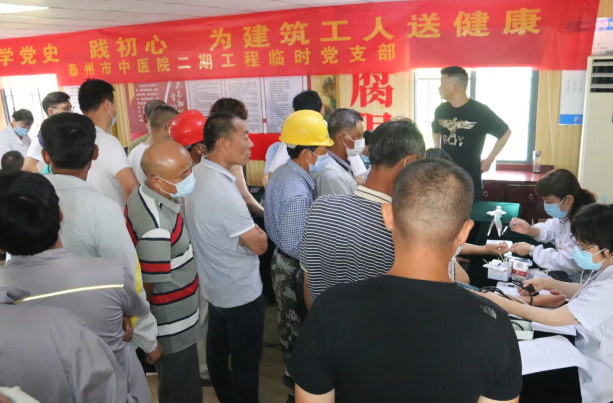 為積極響應(yīng)在黨史學(xué)習(xí)教育中開展“我為群眾辦實事”實踐活動的號召,保障一線建筑工人身體健康,為工程安全生產(chǎn)、高效推進打下堅實基礎(chǔ)。6月29日上午,泰州市中醫(yī)院第二黨支部聯(lián)合泰州市城投建設(shè)以及泰州市審計局黨支部走進二期工程一線工地為建筑工人開展“學(xué)黨史 踐初心 送健康”義診活動。