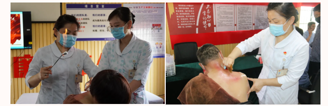 我院護理人員還為工人們進行三伏貼、推拿按摩、針灸拔罐、耳穴埋籽、經(jīng)絡(luò)刮痧等中醫(yī)護理操作,幫助他們疏通經(jīng)絡(luò),緩解疼痛。