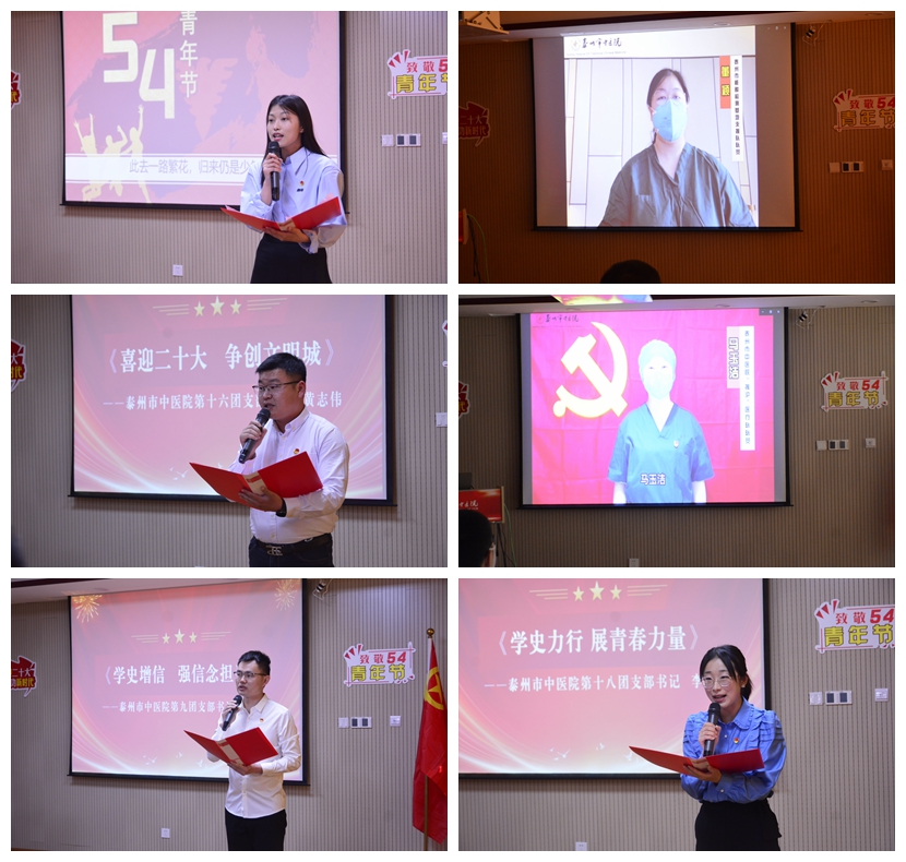 ??為進(jìn)一步鞏固我院黨史學(xué)習(xí)教育成果,凝聚全院青年用實(shí)踐行動(dòng)繼承和發(fā)揚(yáng)五四運(yùn)動(dòng)“愛國(guó)、進(jìn)步、民主、科學(xué)”的精神,積極響應(yīng)市團(tuán)委“戰(zhàn)疫青春”的活動(dòng)號(hào)召,5月4日,在中國(guó)共產(chǎn)主義青年團(tuán)成立100周年到來之際,泰州市中醫(yī)院舉辦2022年“五四”青年節(jié)云端朗誦會(huì)。共青團(tuán)泰州市委副書記曹承、泰州市衛(wèi)健委團(tuán)委書記袁超、泰州市中醫(yī)院黨委副書記孫曉軍、泰州市中醫(yī)院副院長(zhǎng)殷勇等嘉賓及我院國(guó)家級(jí)青年文明號(hào)代表、全國(guó)優(yōu)秀共青團(tuán)員、各團(tuán)支部書記、青年醫(yī)務(wù)骨干人員代表等參加本次活動(dòng)。???