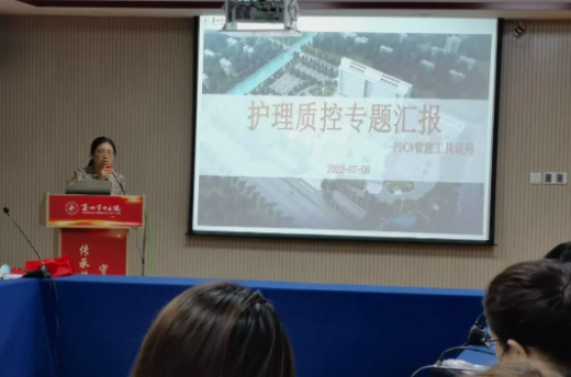 為進(jìn)一步樹(shù)立護(hù)理隊(duì)伍質(zhì)量管理意識(shí),提高護(hù)士長(zhǎng)科學(xué)管理水平,提升護(hù)理人員以問(wèn)題為導(dǎo)向、運(yùn)用管理工具解決問(wèn)題的能力,泰州市中醫(yī)院護(hù)理部于7月8日下午舉行了2022年度上半年護(hù)理質(zhì)量改善專(zhuān)題匯報(bào)會(huì),全院護(hù)士長(zhǎng)參加會(huì)議。