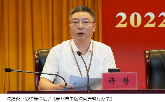 為認(rèn)真貫徹落實全面從嚴(yán)治黨的要求,扎實推進黨風(fēng)廉政建設(shè)工作,進一步增強全體黨員干部職工黨風(fēng)廉政建設(shè)的政治意識、責(zé)任意識和大局意識,營造風(fēng)清氣正的醫(yī)院環(huán)境,7月27日下午,泰州市中醫(yī)院召開2022年黨風(fēng)廉政建設(shè)大會。院領(lǐng)導(dǎo)班子全體成員、各部門、科室負(fù)責(zé)人、護士長等參會,泰州市紀(jì)委監(jiān)委第十四派駐紀(jì)檢監(jiān)察組組長顧宏偉出席會議并講話。