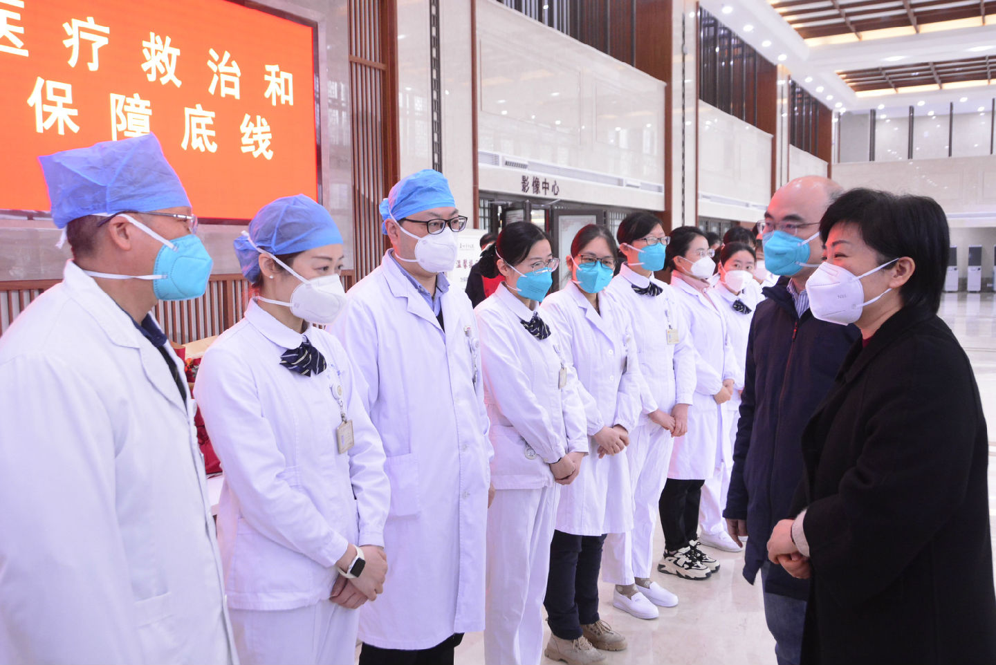 在市中醫(yī)院,萬聞華與醫(yī)務(wù)人員深入交流,詳細了解近期發(fā)熱門診就診、患者數(shù)量結(jié)構(gòu)、重癥病人救治情況,詢問醫(yī)院醫(yī)療資源統(tǒng)籌、醫(yī)護人員關(guān)愛保障等,向大家道一聲辛苦,衷心感謝大家的堅守付出和無私奉獻。