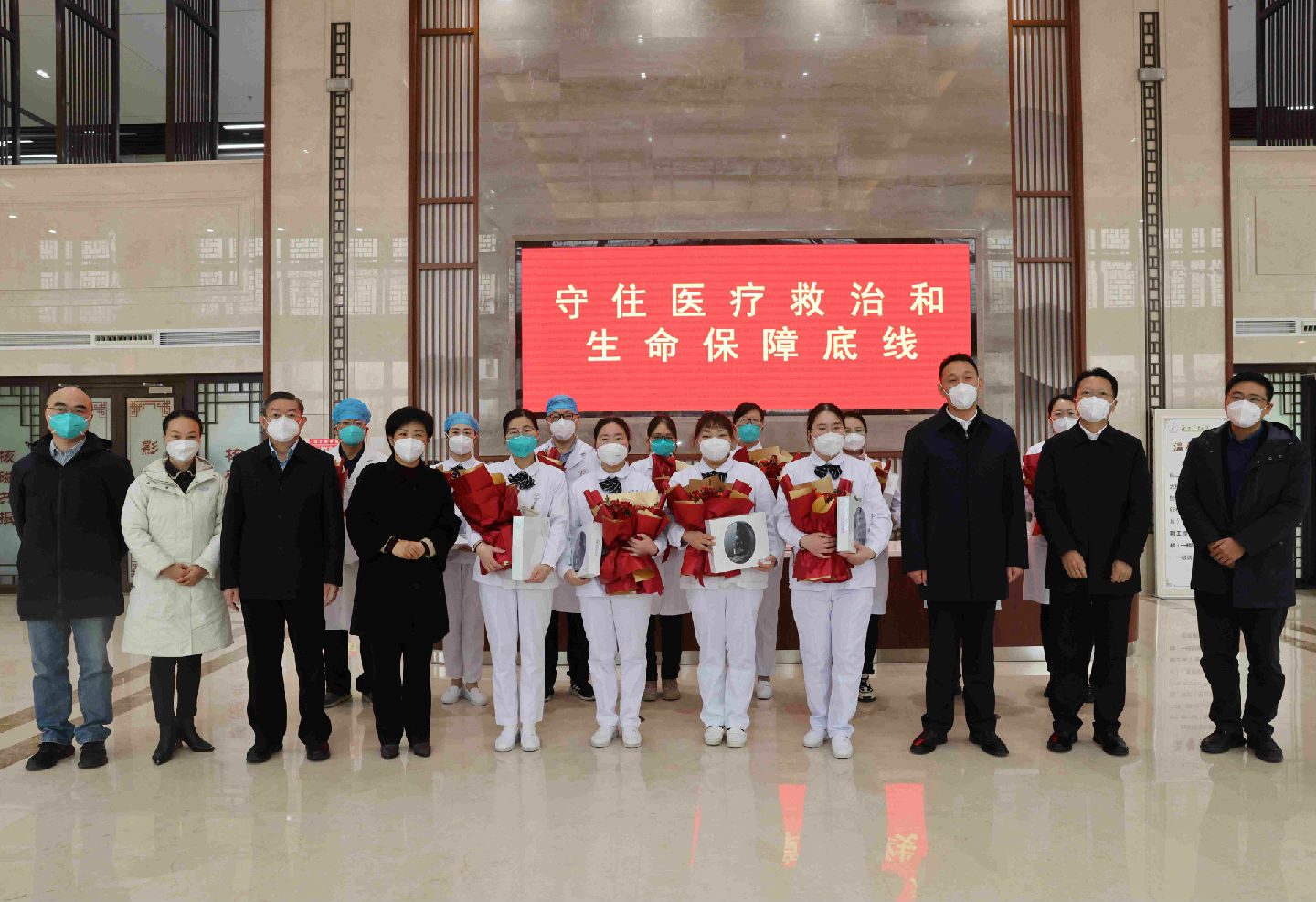 接過鮮花的醫(yī)護人員紛紛表示,在這場硬仗中,盡管很艱苦,但大家一定會按照上級的統(tǒng)一部署安排,站好每一班崗,全力以赴保障人民群眾生命安全和身體健康。