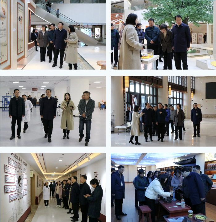 在院黨委書記韓金虎、副書記孫曉軍的陪同下,大家首先來到全國中醫(yī)藥文化宣傳教育基地——中醫(yī)文化園進行參觀,獨具特色的中醫(yī)藥文化景觀、特色成果及各類中醫(yī)藥陳列產品無不彰顯醫(yī)院濃厚的中醫(yī)藥文化內涵,大家邊看邊聽,興致勃勃。隨后大家依次探訪了中醫(yī)護理門診、食療養(yǎng)生館、中藥炮制中心、健康管理中心、康復中心、針灸推拿中心以及中醫(yī)經典科病房,深入了解醫(yī)院中西醫(yī)結合創(chuàng)新發(fā)展現(xiàn)狀,進一步體驗中醫(yī)藥在疾病防治、康養(yǎng)等領域的獨特魅力。
