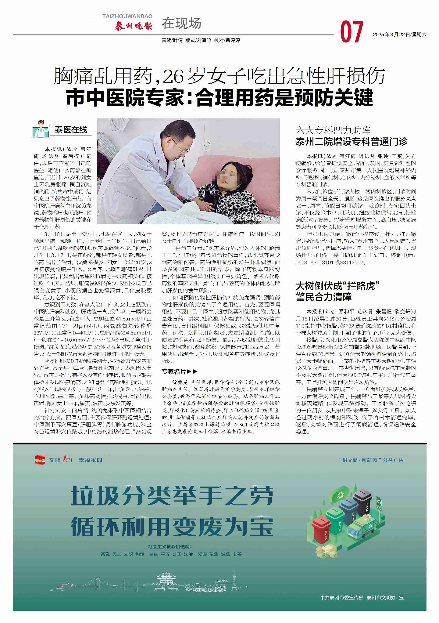 【泰州晚報3月22日】市中醫(yī)院專家:合理用用藥是預(yù)防關(guān)鍵
