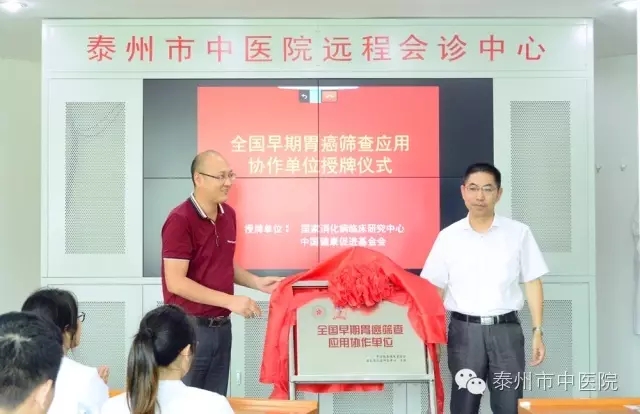 8月17日下午,泰州市中醫(yī)院舉行“全國早期胃癌篩查應(yīng)用協(xié)作單位”揭牌儀式。市中醫(yī)院消化內(nèi)科胃癌的早期發(fā)現(xiàn)、早期診斷和早期治療水平得到專業(yè)認(rèn)可。成為省內(nèi)擁有早期胃癌篩查水平的十家單位之一。