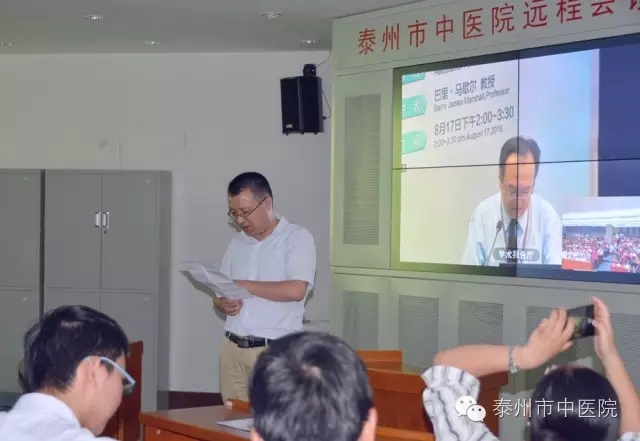 在遠(yuǎn)程會議中心,通過視頻連線,市中醫(yī)院臨床醫(yī)生們聆聽了諾貝爾獎獲得者巴里.馬歇爾教授講述他與幽門螺桿菌的故事:《幽門螺桿菌:理論與實踐》。因為發(fā)現(xiàn)和證明了幽門螺旋桿菌(Helicobacter pylori,Hp)在胃炎和胃潰瘍等疾病中的致病作用,巴里.馬歇爾教授被授予2005年諾貝爾生理或醫(yī)學(xué)獎。