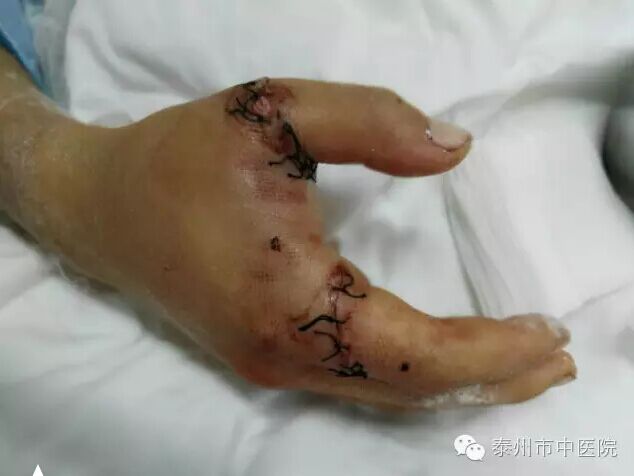 拇指離斷,食指不全離斷斷指再植術(shù)后第二天