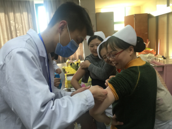 泰州市疾控中心預(yù)測2017年可能為麻疹流行年,醫(yī)務(wù)人員工作中極易接觸到麻疹病人,為做好預(yù)防工作,保障醫(yī)務(wù)人員的健康,我院疾控科聯(lián)系城中衛(wèi)生服務(wù)中心,3月2日為我院兒科、急診科、血液科等科室的醫(yī)護人開展麻疹疫苗接種工作。
