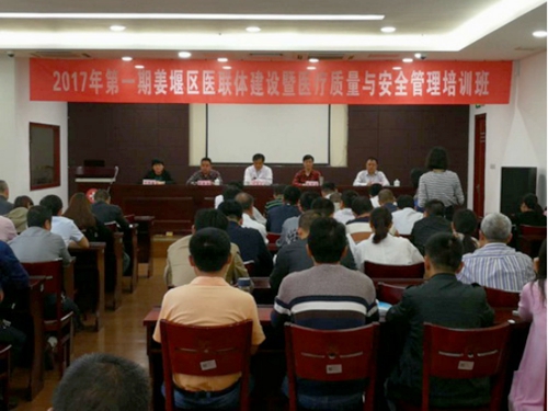 為進(jìn)一步推進(jìn)泰州市地區(qū)醫(yī)聯(lián)體建設(shè)工作,提升醫(yī)聯(lián)體成員單位的整體醫(yī)療水平,規(guī)范醫(yī)療行為,保障醫(yī)療質(zhì)量與安全。2017年5月13日上午,2017年第一期醫(yī)聯(lián)體建設(shè)暨醫(yī)療質(zhì)量與安全管理培訓(xùn)班,在姜堰中醫(yī)院康復(fù)樓七樓會(huì)議室舉行。我院醫(yī)務(wù)處殷勇處長(zhǎng)參加了本次會(huì)議,并在會(huì)上就我院醫(yī)療質(zhì)量與安全管理方面好的經(jīng)驗(yàn)和做法進(jìn)行了介紹。