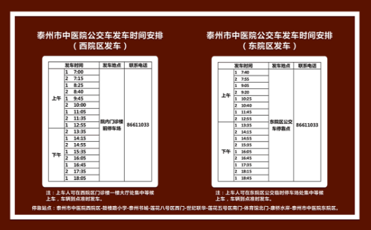 1、定制公交車,每天兩輛東、西院運(yùn)行,免費(fèi)乘坐,時(shí)間從早7:00至晚6:45,途經(jīng)主城區(qū)一些人群集聚的居民住宅,直達(dá)醫(yī)院內(nèi)部。