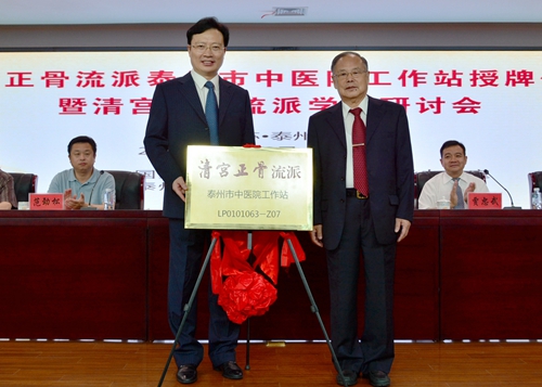 授牌儀式上,王華致歡迎辭。他說,在國(guó)家中醫(yī)藥管理局相關(guān)司室和流派傳承辦公室的關(guān)心和大力支持下,將清宮正骨流派工作站落戶泰州市中醫(yī)院,并帶領(lǐng)全國(guó)眾多知名專家來泰開展學(xué)術(shù)研討,舉行大型義診,其規(guī)格之高,陣容之大,成為泰州市中醫(yī)院史無前例的一件盛事。同時(shí),也是為泰州市民提供大師級(jí)醫(yī)療、健康服務(wù)的大事。王華表示,泰州市中醫(yī)院將以清宮正骨流派泰州市中醫(yī)院工作站的成立為契機(jī),帶領(lǐng)泰州市中醫(yī)院自己的省級(jí)非物質(zhì)文化遺產(chǎn)——“許氏骨科”,汲取清宮正骨流派的精華,從“筋骨并重,中西并舉”等多個(gè)方面進(jìn)行總結(jié)、提高,使泰州市中醫(yī)院骨傷科有更加長(zhǎng)足的發(fā)展,讓清宮正骨這一獨(dú)特療法惠及更多的百姓。