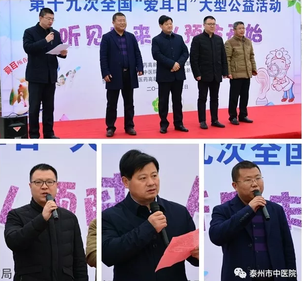 3月2日上午,“愛耳日”公益活動開幕儀式在泰州市明珠廣場舉行。泰州市中醫(yī)院副院長殷勇,泰州市醫(yī)藥高新區(qū)民政局副局長陳奎芝,泰州醫(yī)藥高新區(qū)愛心公益聯(lián)盟理事長盧大成、中醫(yī)院耳鼻喉科主任於榮鑄參加了開幕儀式。殷勇副院長,陳奎芝副局長,於榮鑄主任分別致辭。開幕式后,泰州市中醫(yī)院耳鼻喉科專家及志愿者為幼兒園的小朋友進(jìn)行了聽力測試,向他們普及預(yù)防耳病的要點。