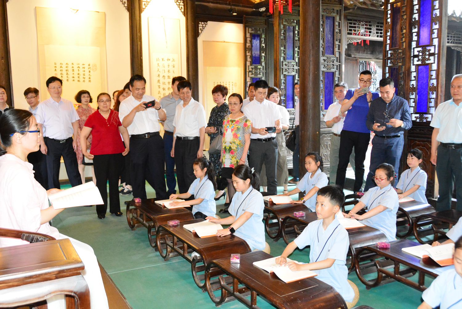 泰州市中醫(yī)院泰和堂國(guó)醫(yī)館聯(lián)合泰州市經(jīng)典誦讀推廣協(xié)會(huì)正在籌辦開(kāi)展“傳統(tǒng)文化”的啟蒙活動(dòng)——國(guó)學(xué)夏令營(yíng)。在這里,通過(guò)播放文化視頻、教授拜孔之禮、品讀儒家經(jīng)典、鑒賞文化內(nèi)涵等方式,引導(dǎo)青年學(xué)生感悟傳統(tǒng)文化的魅力。