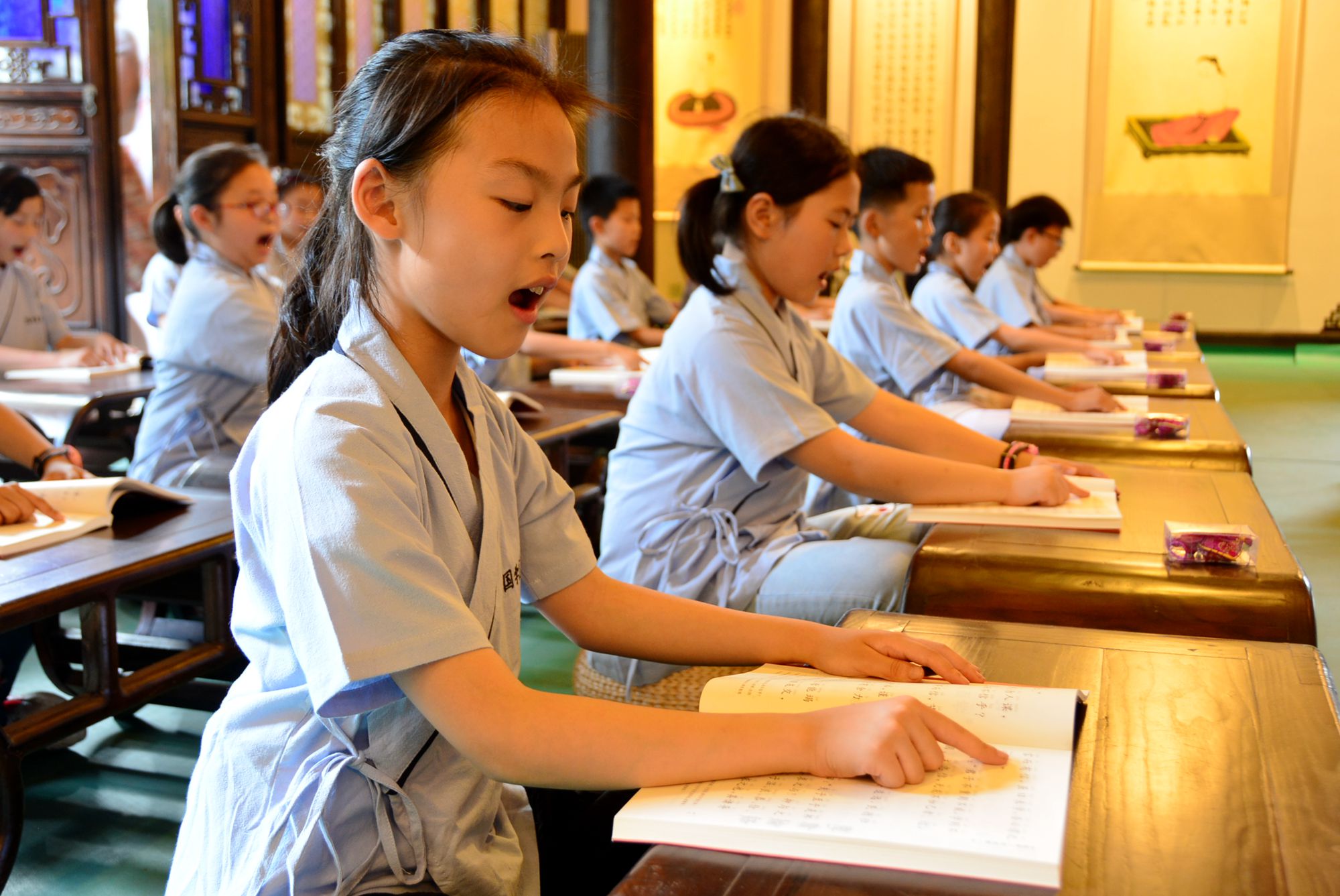 誦讀國(guó)學(xué)經(jīng)典,小學(xué)生們沉浸在誦讀的樂(lè)趣之中