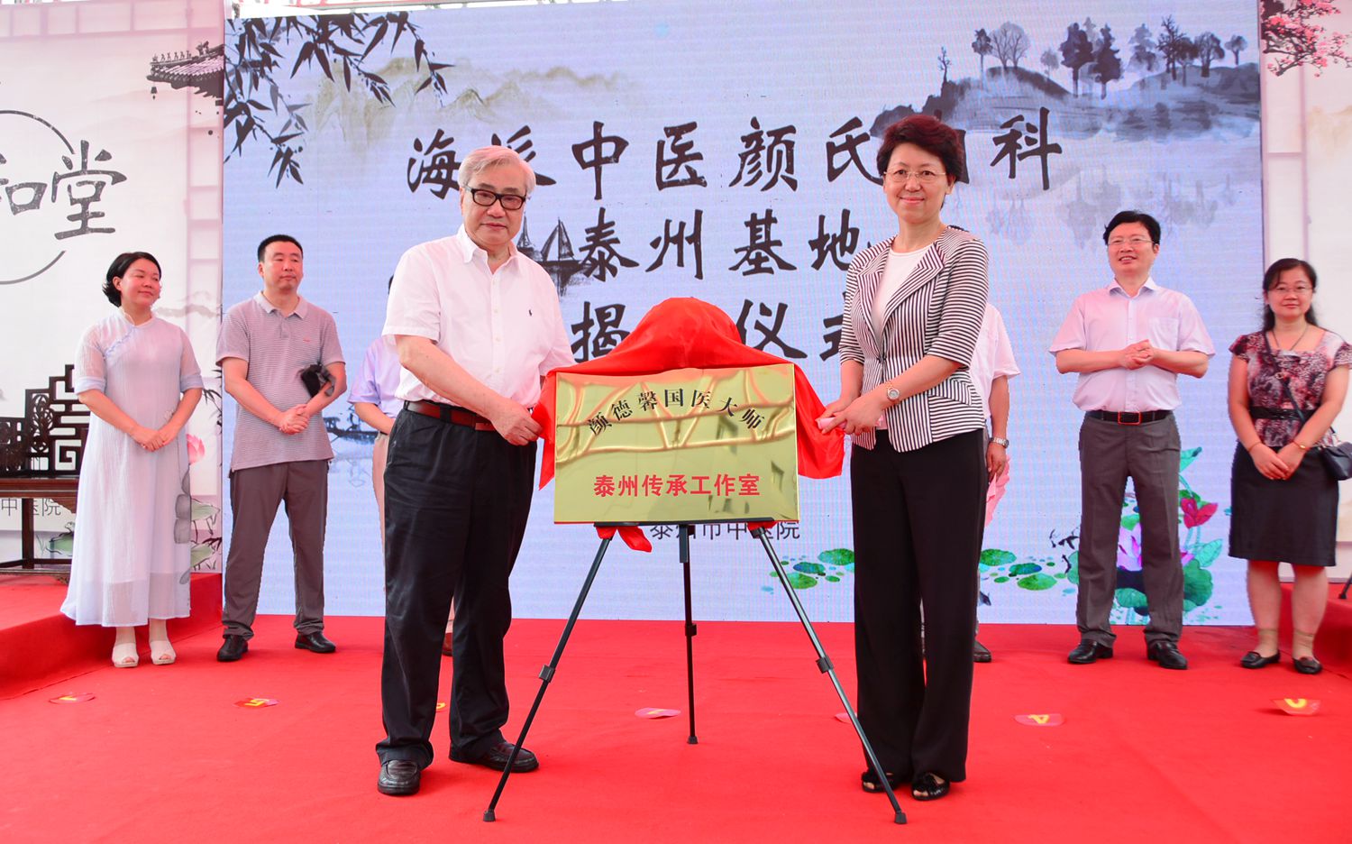 7月2日上午,“顏德馨國醫(yī)大師泰州傳承工作室”“海派中醫(yī)顏氏內(nèi)科泰州基地”“顏乾麟全國名老中醫(yī)藥專家泰州工作室”在泰州市中醫(yī)院泰和堂國醫(yī)館揭牌成立。泰州市委常委、市委宣傳部部長常勝梅,同濟(jì)大學(xué)中醫(yī)研究所副所長、全國老中醫(yī)藥專家學(xué)術(shù)經(jīng)驗(yàn)繼承工作指導(dǎo)老師顏乾麟,泰州市衛(wèi)計(jì)委主任徐洪濤,泰州市衛(wèi)計(jì)委副調(diào)研員王彬,泰州市中醫(yī)院院長王華,上海市第十人民醫(yī)院中醫(yī)科副主任韓天雄,上海長江書院院長謝業(yè)惠,顏氏內(nèi)科第四代傳人劉珺以及泰州市中醫(yī)院領(lǐng)導(dǎo)班子成員及職能處室負(fù)責(zé)人參加了揭牌儀式,揭牌儀式由泰州市衛(wèi)生計(jì)生委主任徐洪濤主持。