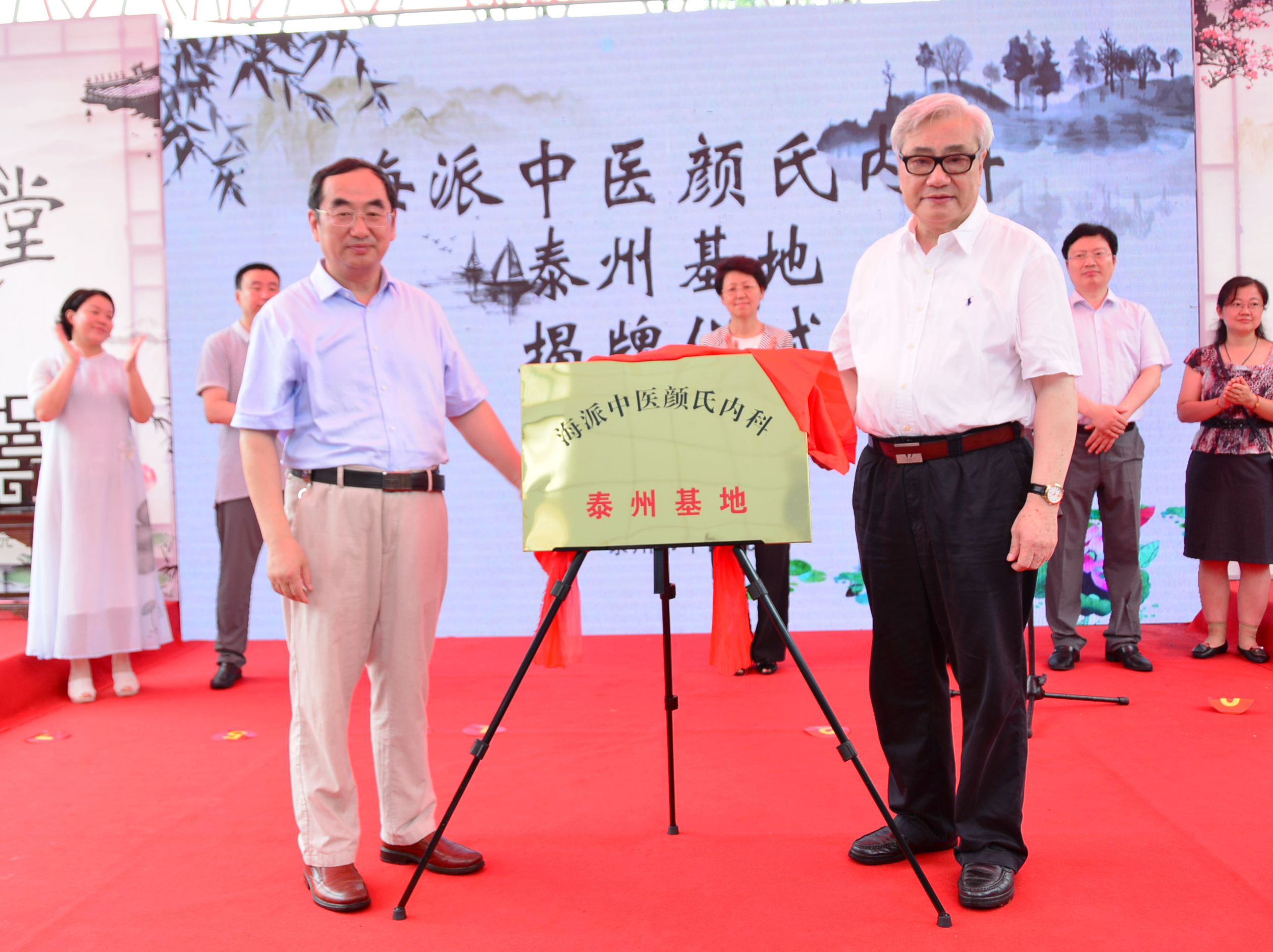 顏乾麟教授與市衛(wèi)計(jì)委副調(diào)研員王彬共同為“海派中醫(yī)顏氏內(nèi)科泰州基地”揭牌