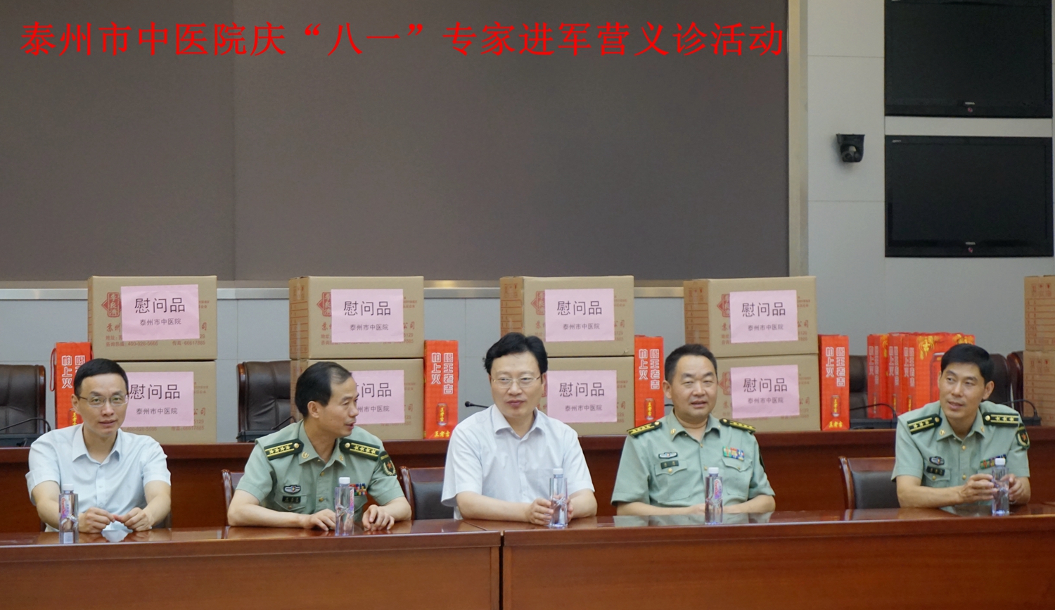 2018年“八一”建軍節(jié)前夕,泰州市中醫(yī)院組織了一系列慶“八一”建軍節(jié)走訪慰問義診活動,向官兵們致以節(jié)日的問候,并為他們送去一份溫馨的關(guān)愛?;顒佑舍t(yī)院黨委書記、院長王華,黨委副書記孫曉軍帶隊。
