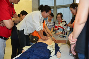 醫(yī)護(hù)志愿者人員認(rèn)真講解,市民學(xué)習(xí)熱情高漲,練習(xí)心肺復(fù)蘇時(shí),嚴(yán)格要求自己,直到達(dá)到模擬人的亮燈要求才肯松手。